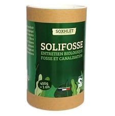 L’Activateur Fosse SOLIFOSSE « SOXHLET » est un nutriment essentiel au bon développement bactérien des systèmes d’assainissement : fosses septiques, micro-stations, lagunes aérées…Fabriqué à partir de matières premières issues de ressources renouvelables. Conditionné pour le particulier, pratique et discret, il trouvera sa place au sein de vos produits ménagers. Finies les mauvaises odeurs !