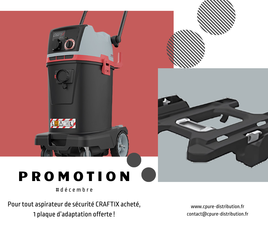 Pour tout aspirateur acheté sur le mois de décembre 2024, une plaque d’adaptation pour boite à outil vous est offerte !